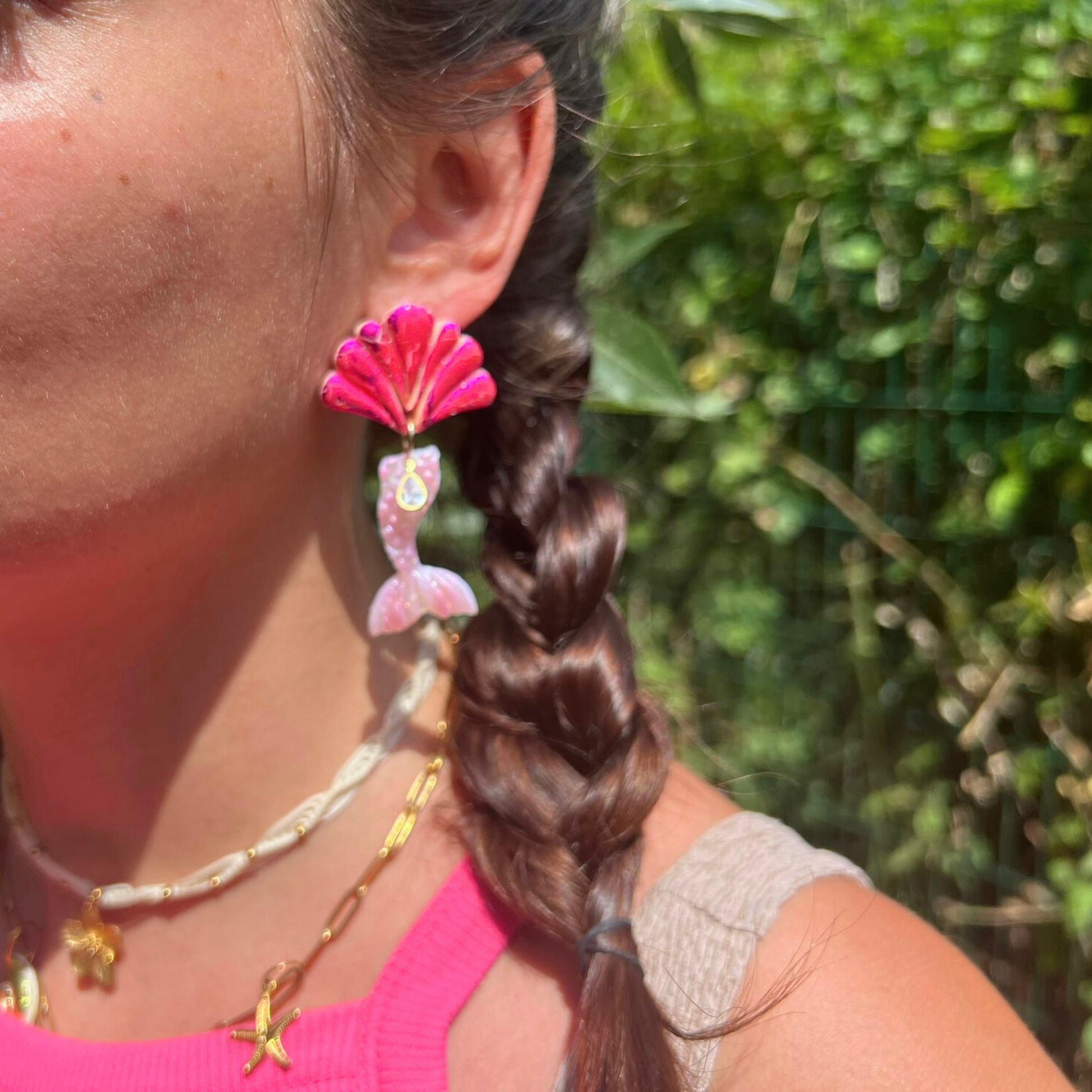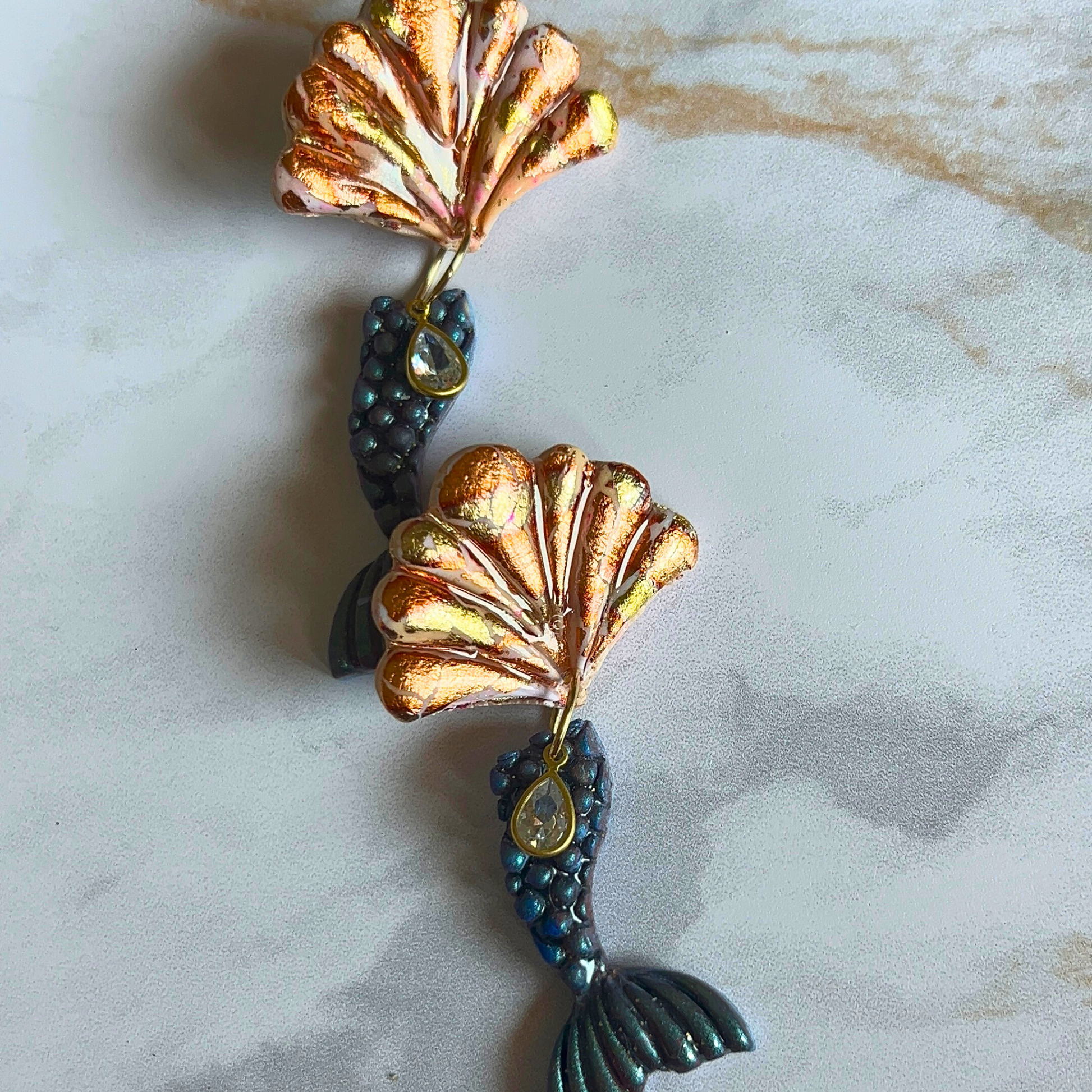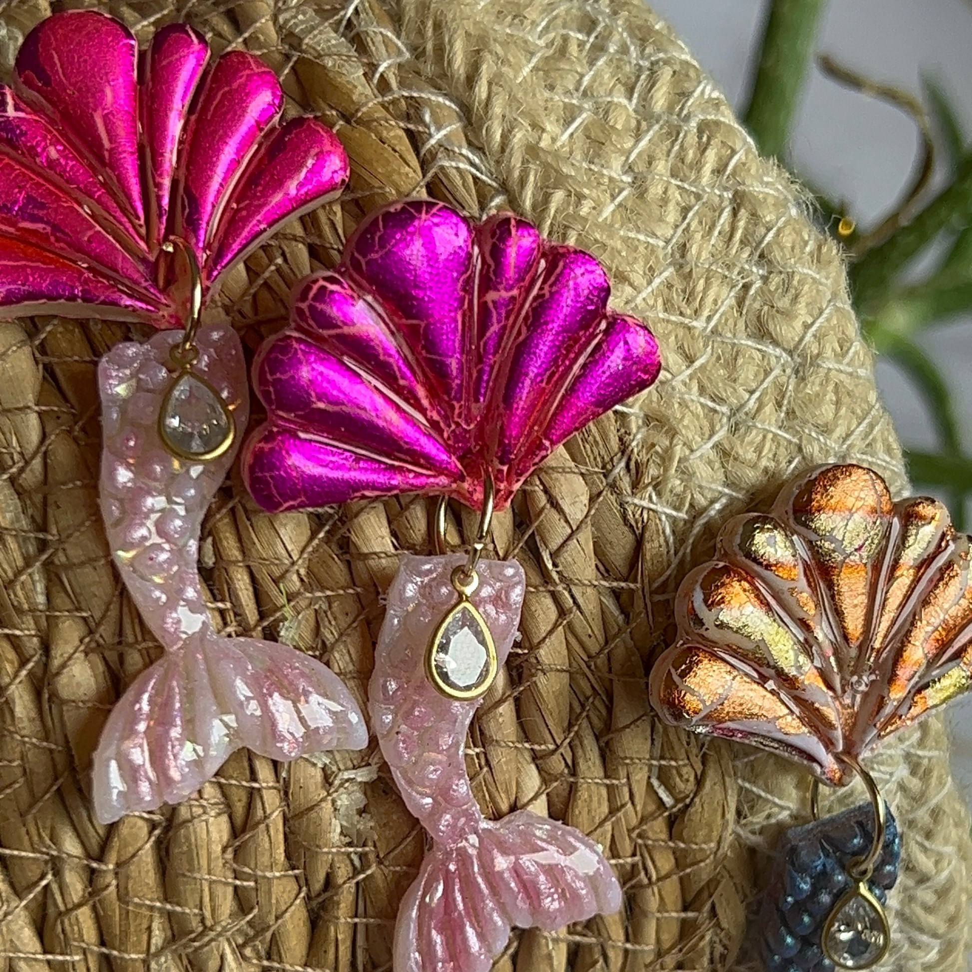 âš Queue de sirĂšne irisĂ©e aux nuances holographiques en pĂąte polymĂšre, sublimĂ©e par un dĂ©licat apprĂȘt floral inspirĂ© du dessin animĂ©, féérique et fantastique !