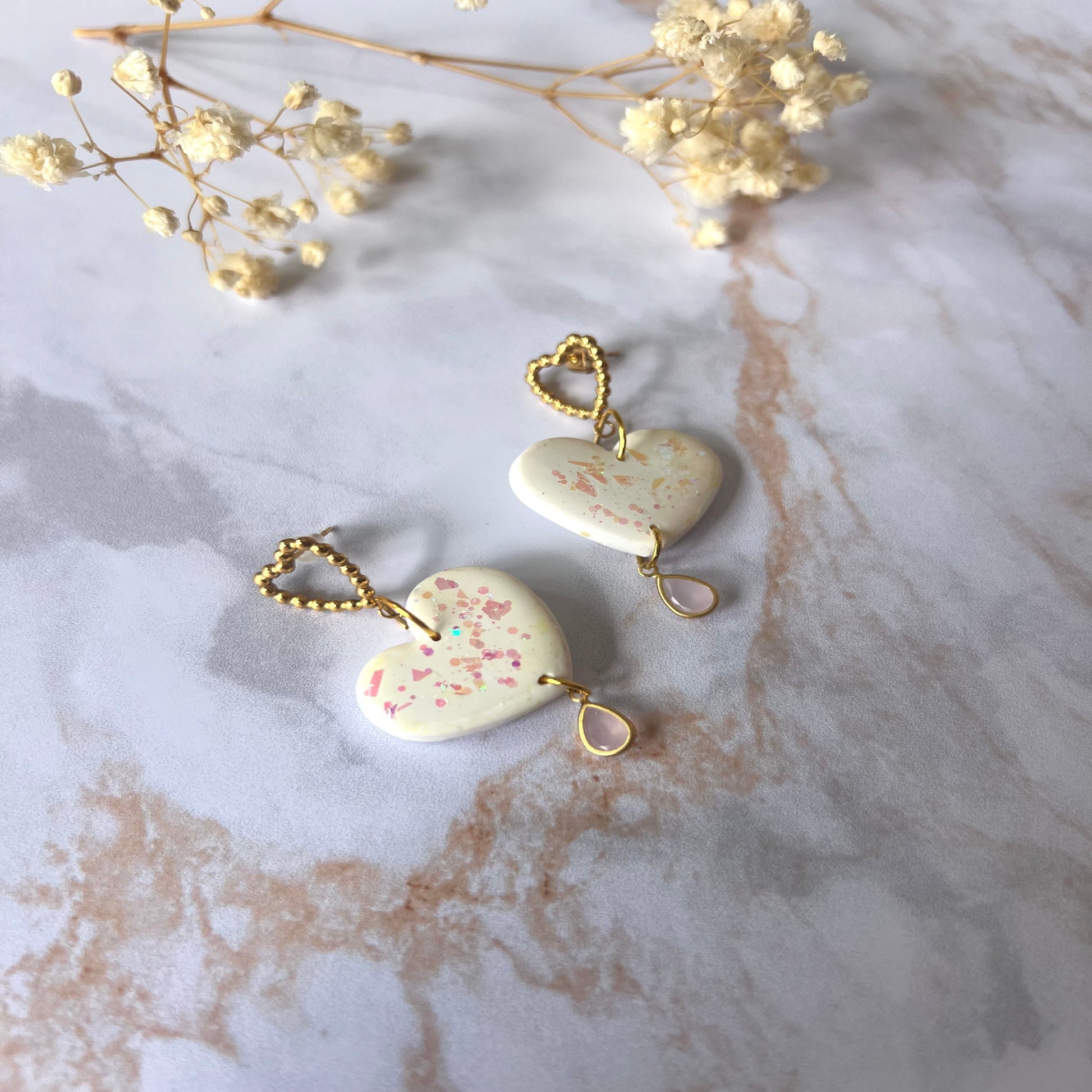 Bijoux en pâte polymère , entièrement faits à la main avec passion ! Léger, coloré et original, chaque modèle est une pièce exclusive, sublimée par des apprêts en acier inoxydable et pierre imitation quartz rose pour un confort et une durabilité optimale.