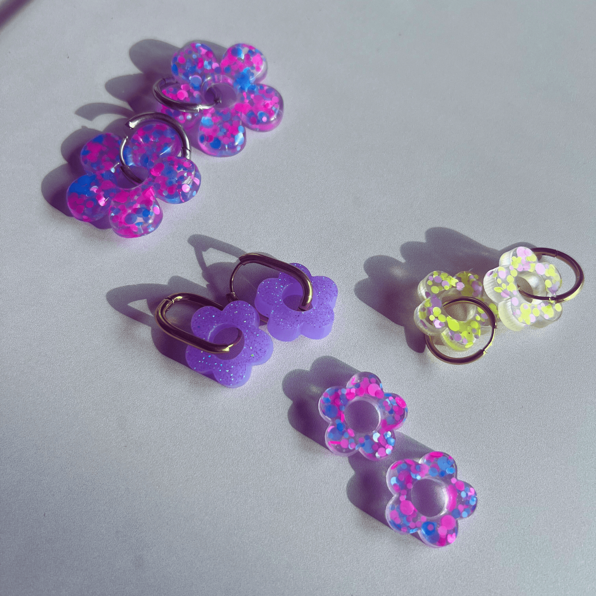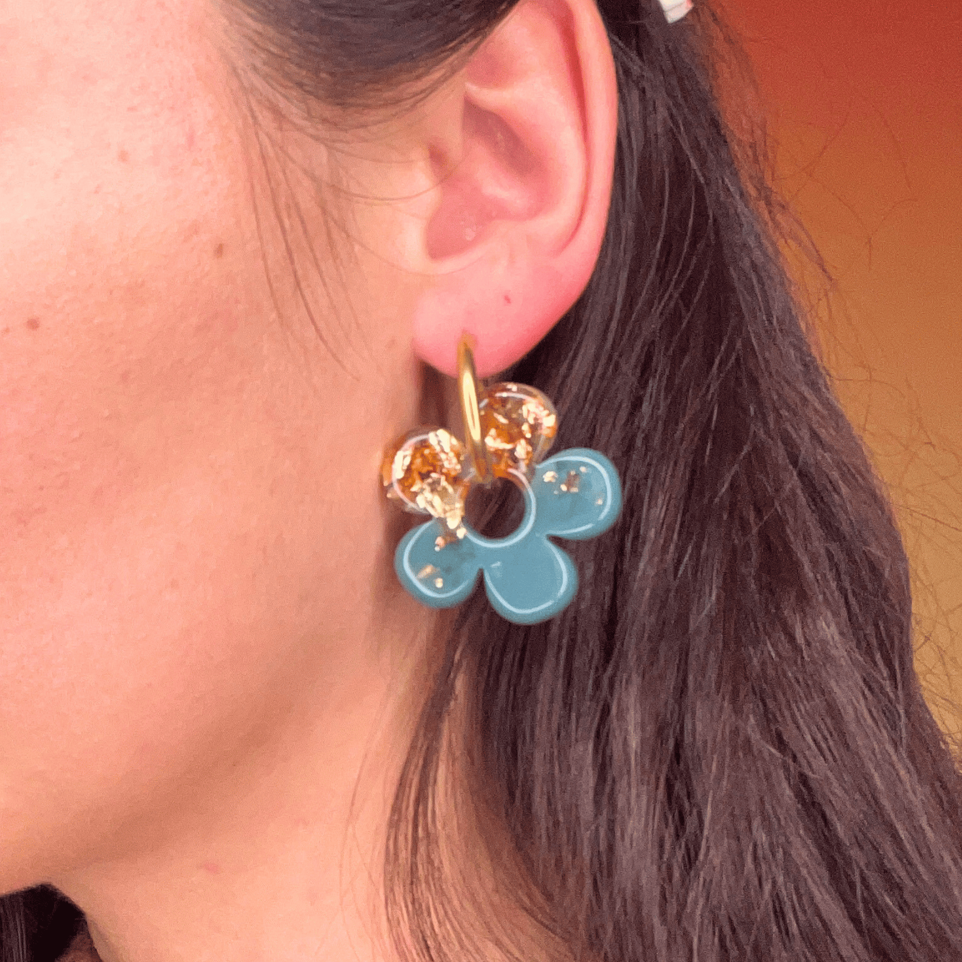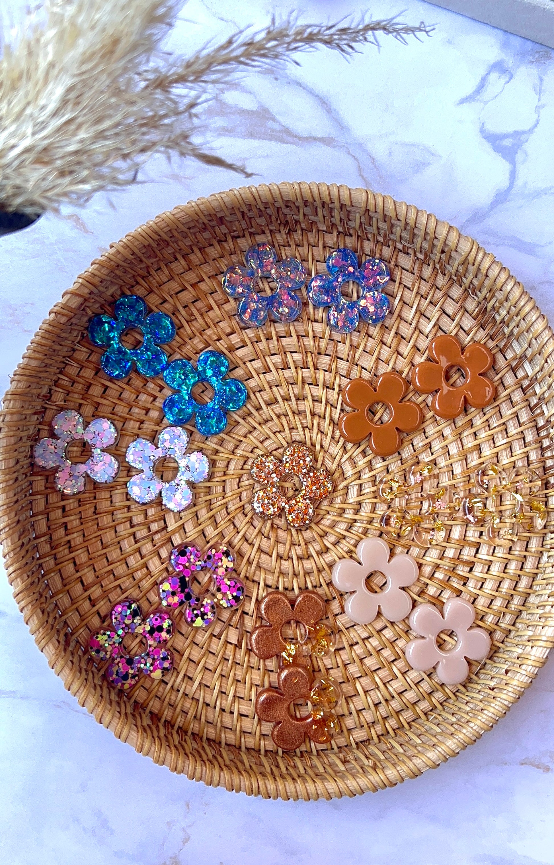 Boucles d'oreilles interchangeables faites à la main en forme de fleurs, en résine : des bijoux élégants et raffinés qui rendent votre look unique.