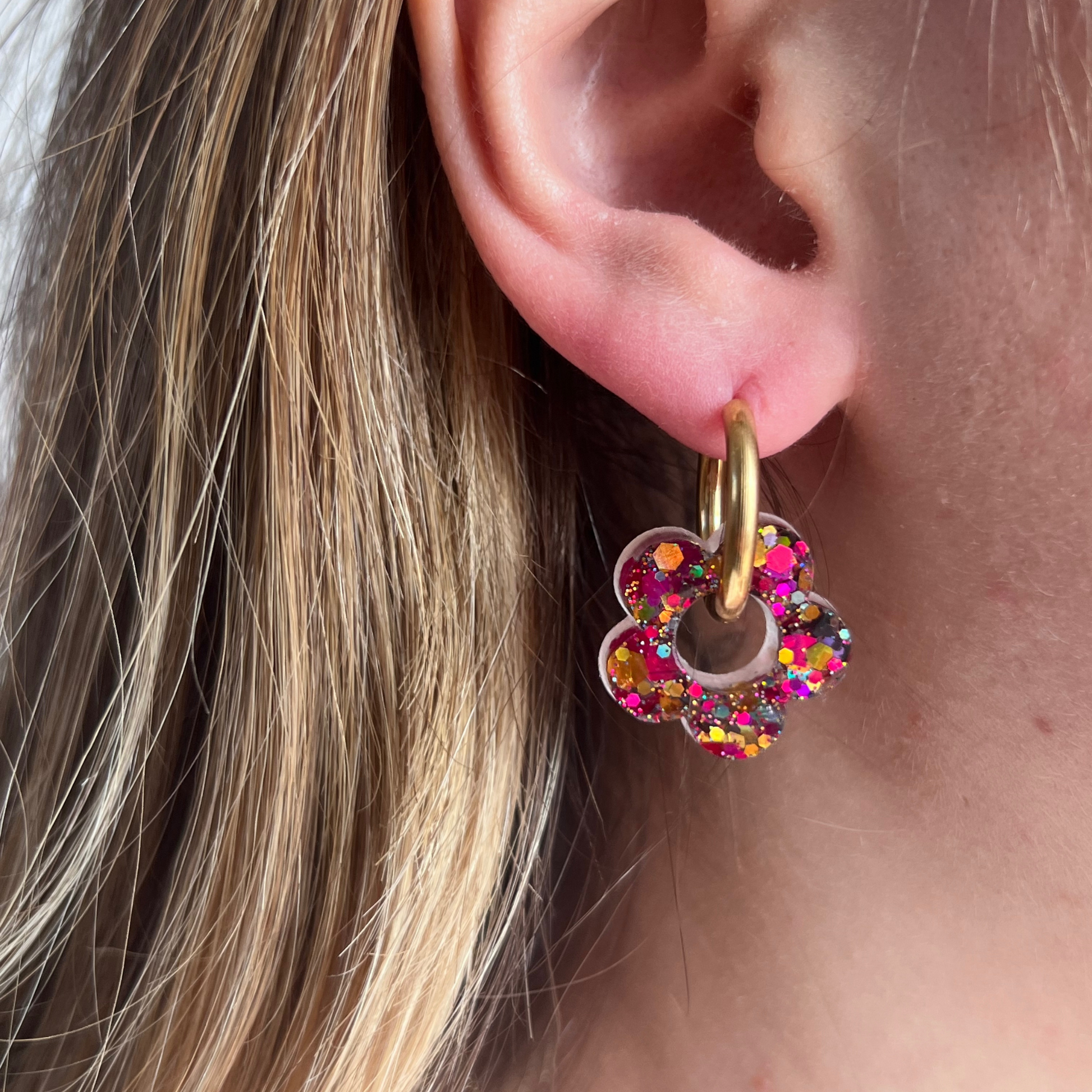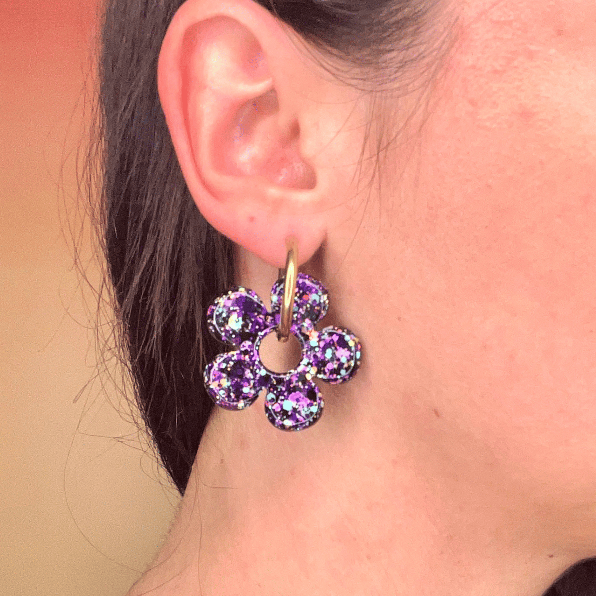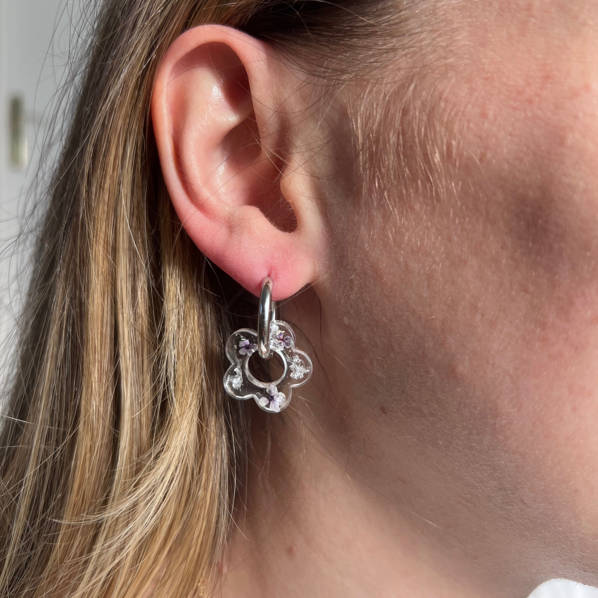 Boucles d'oreilles interchangeables faites à la main en forme de fleurs, en résine : des bijoux élégants et raffinés qui rendent votre look unique.