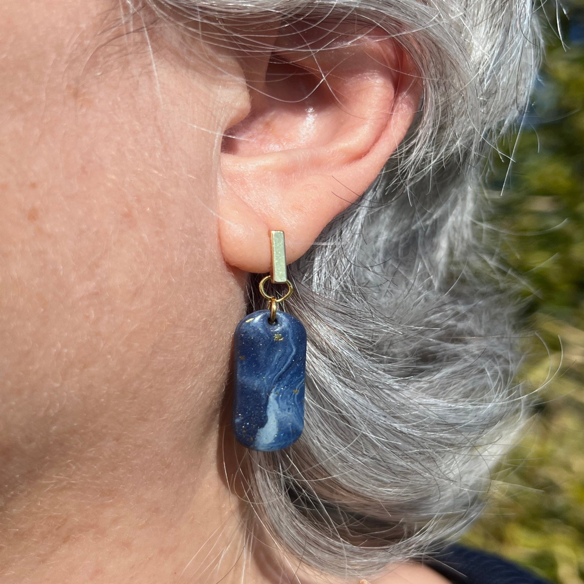 Inspiration de la pierre précieuse "lapis Lazuli" et imaginée pour ma maman qui aime le bleu, voici le modèle Lazuli d'or, fait en pâte polymère.