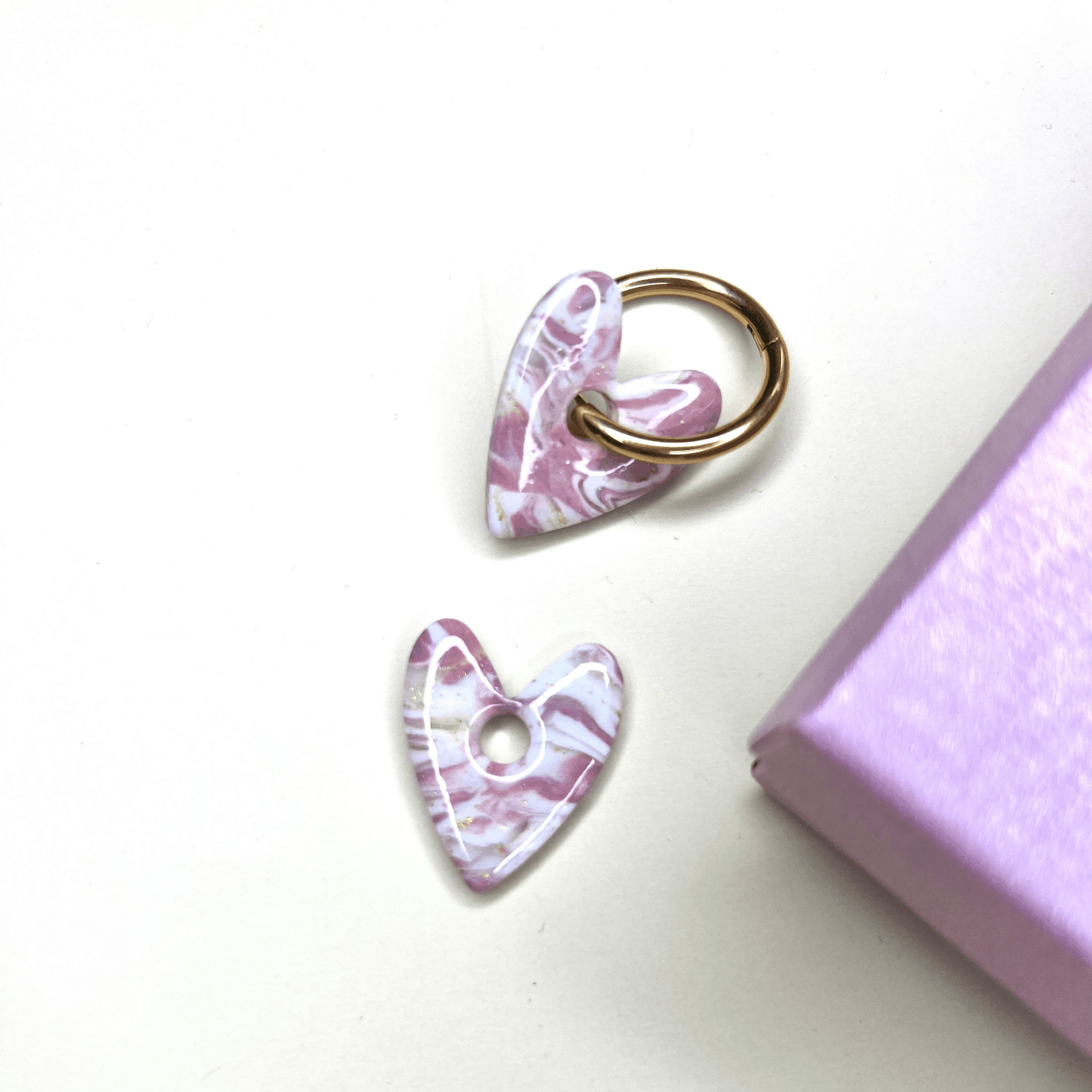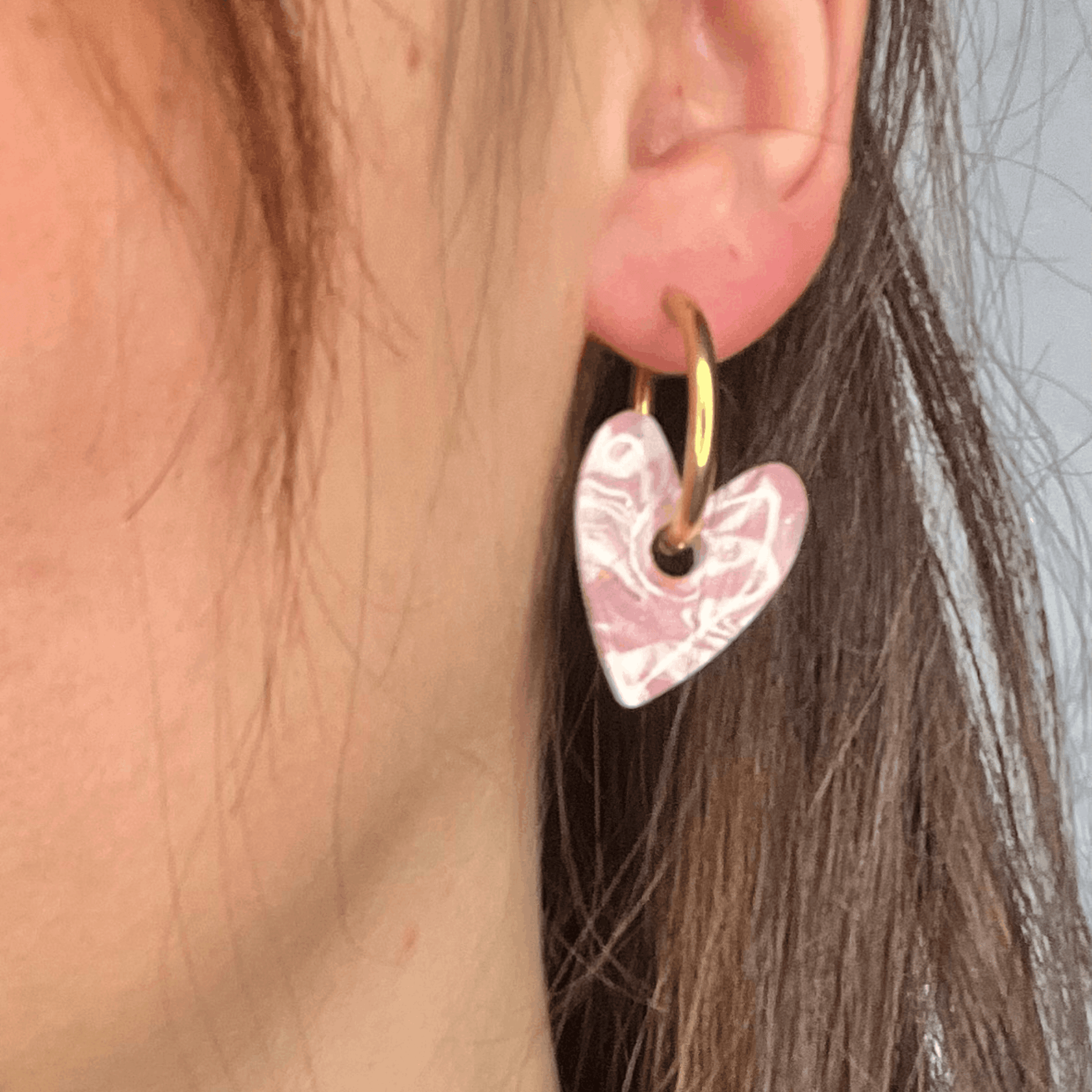 Des cœurs aux marbrures rose et blanc, rehaussés de délicates touches dorées.