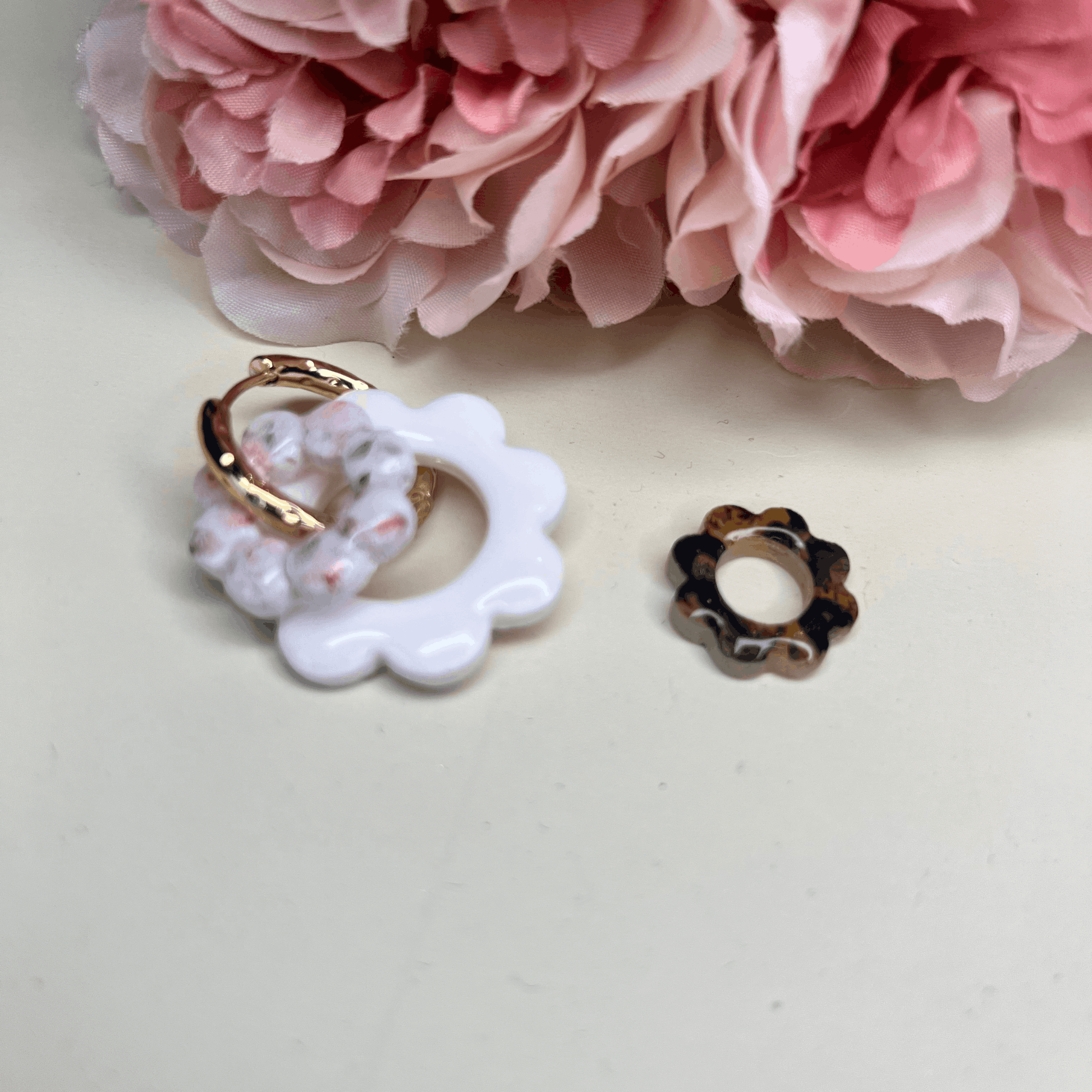 La base blanche s’associe aux mini Bloom ( ici en motif tortoise, le motif du moment ) pour créer ton propre combo, au fil des saisons 🌸🤍