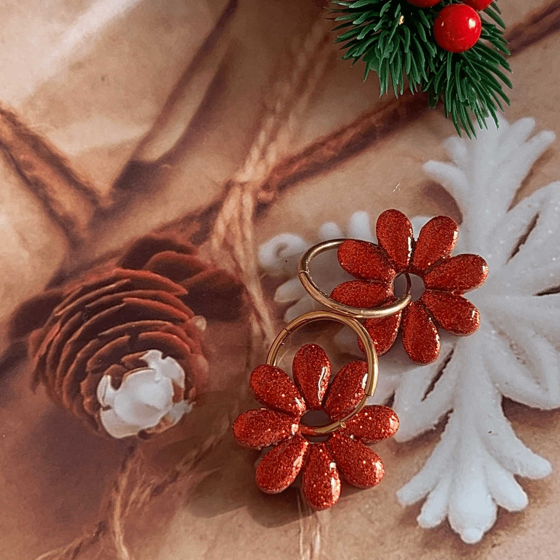 🌸 Boucles d’Oreilles Marguerites – Noël 🌸 rouge paillettes