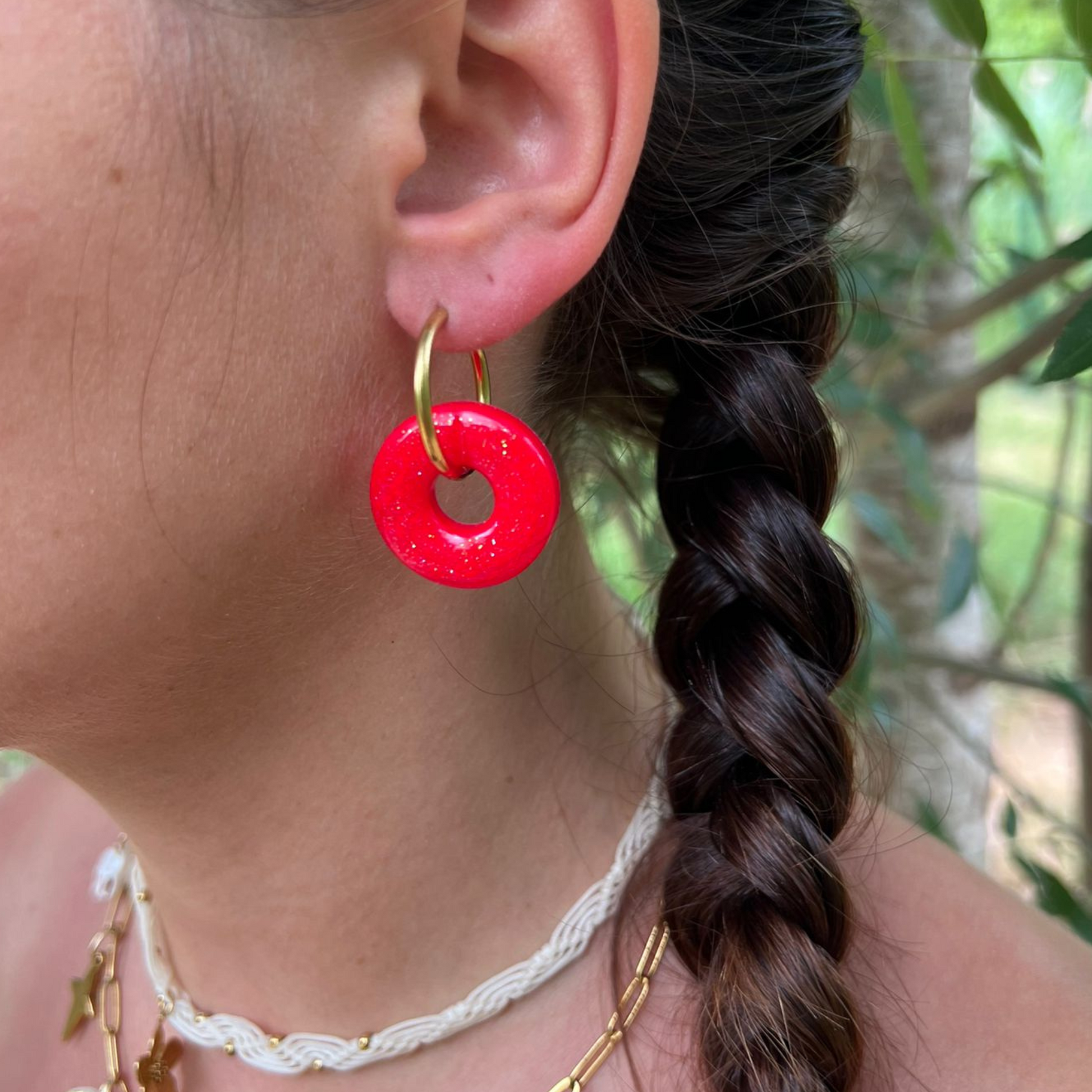 Attention, je vous conseille les créoles de 18 mm minimum pour que le donut puisse passer. Son diamètre est de 2.5cm.