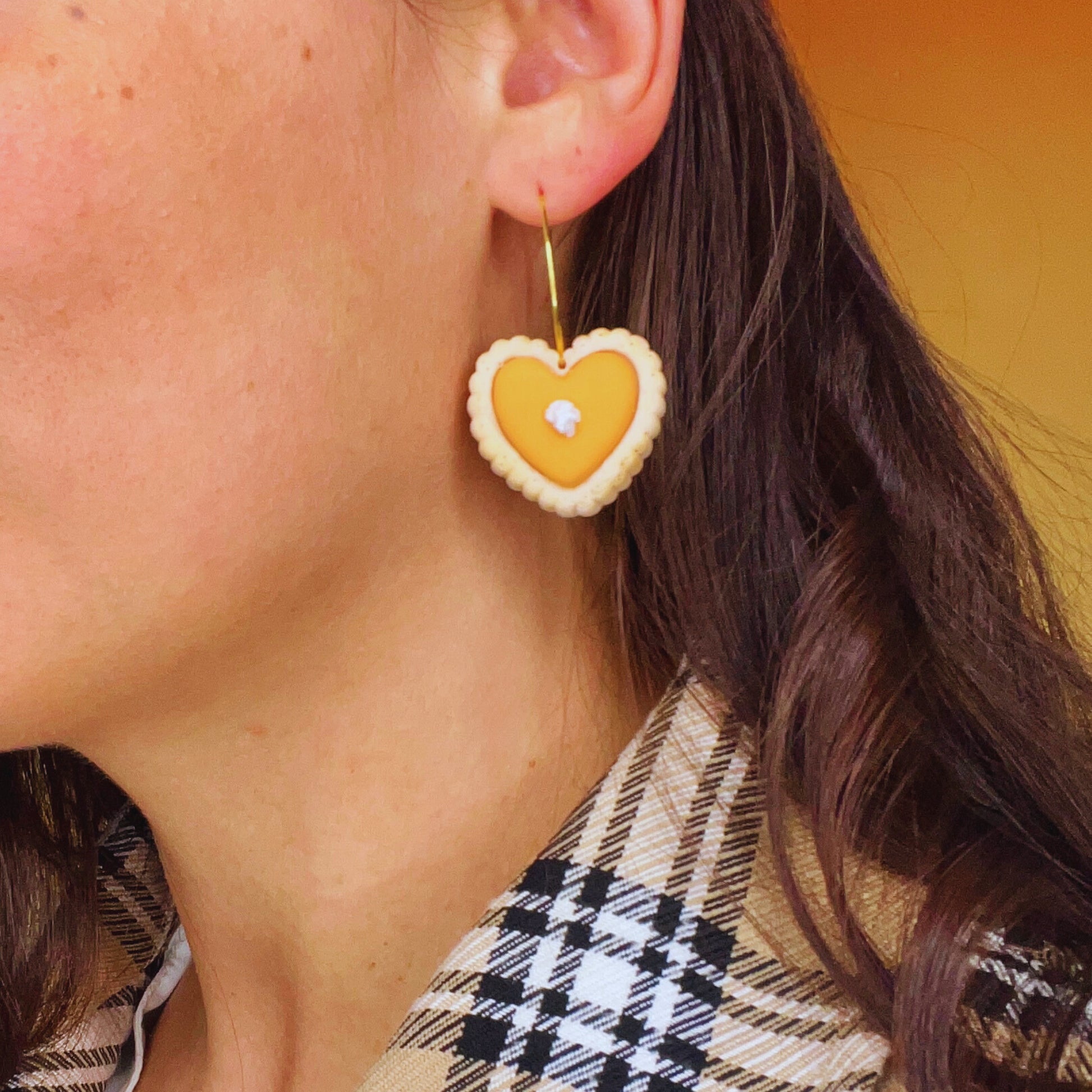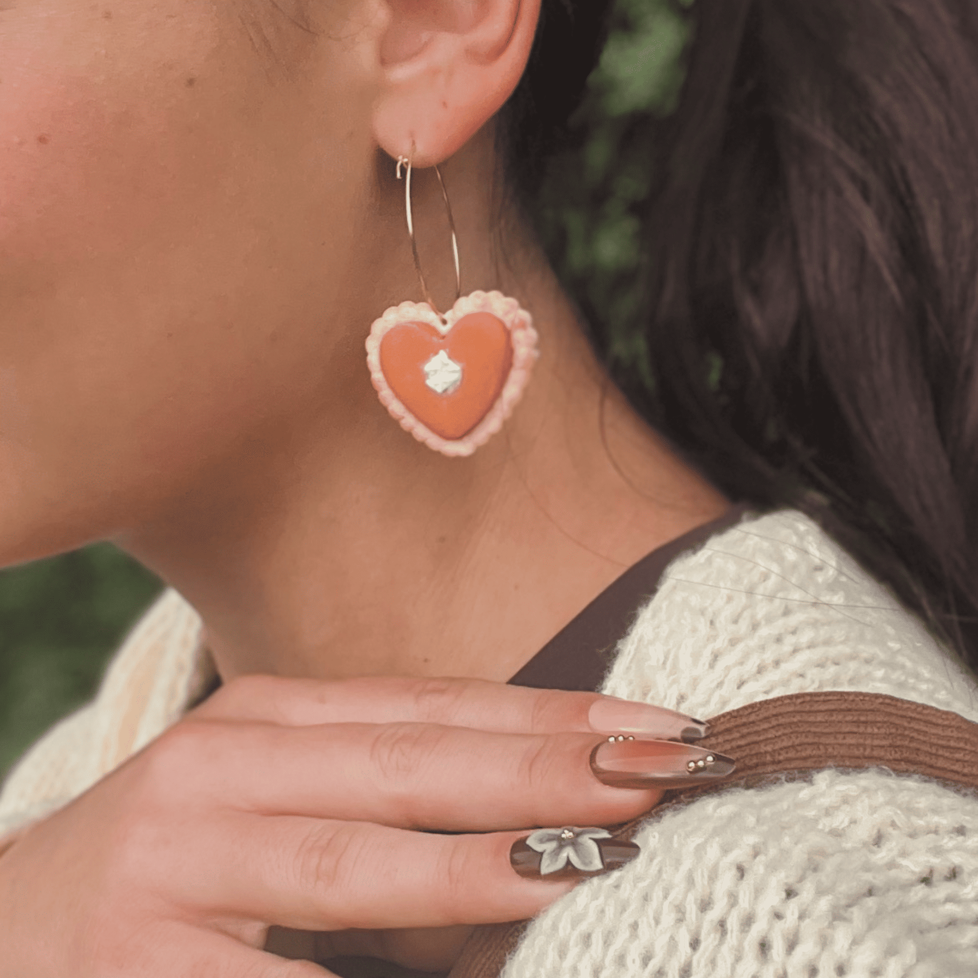 Une tarte à la citrouille revisitée en version bijou gourmand : une jolie part en forme de cœur 🧡avec son petit nuage de chantilly au centre 🍂✨. Les créoles sont incluses dorées ou argentées et mesurent 25mm. Chaque paire est unique et peut être légèrement différente des photos.