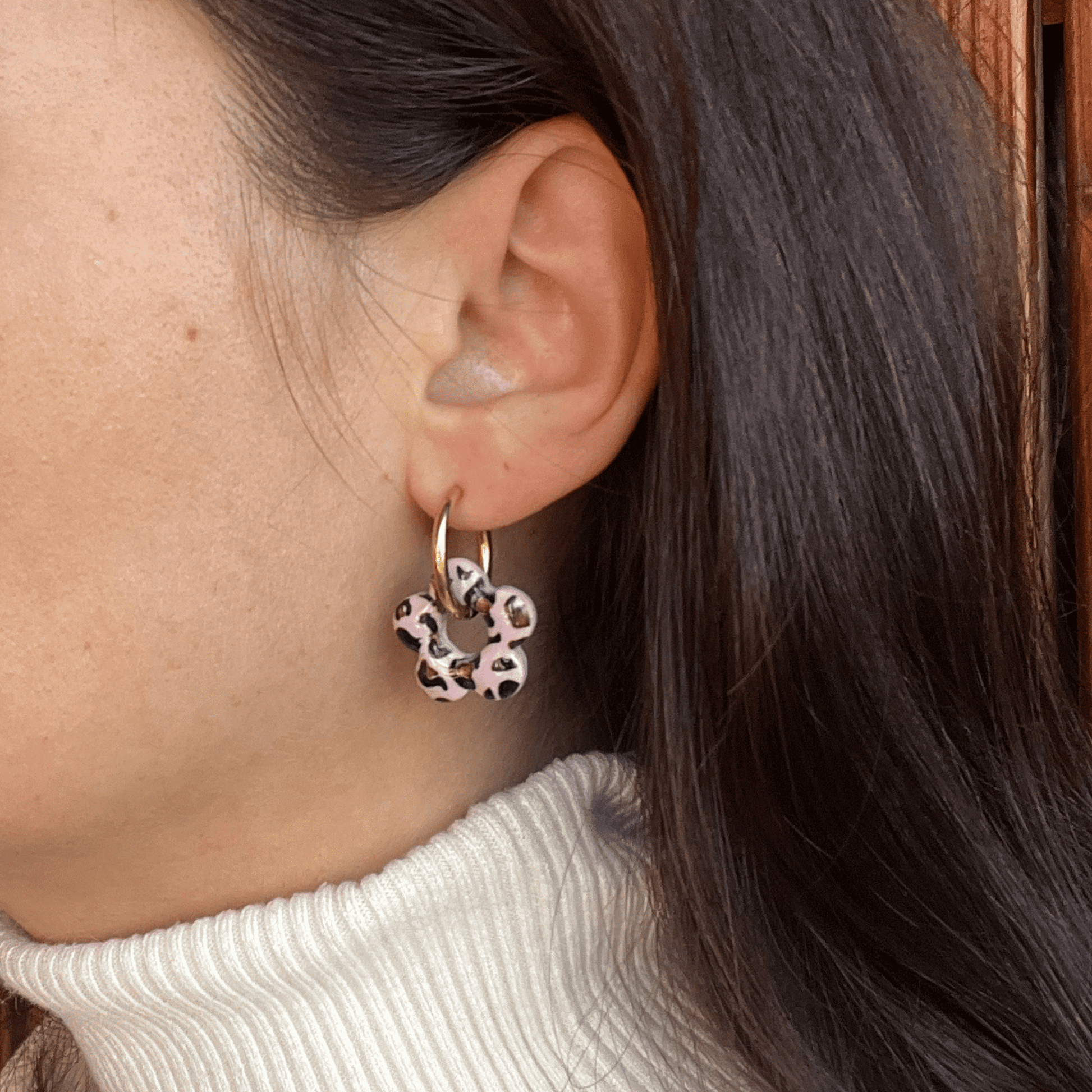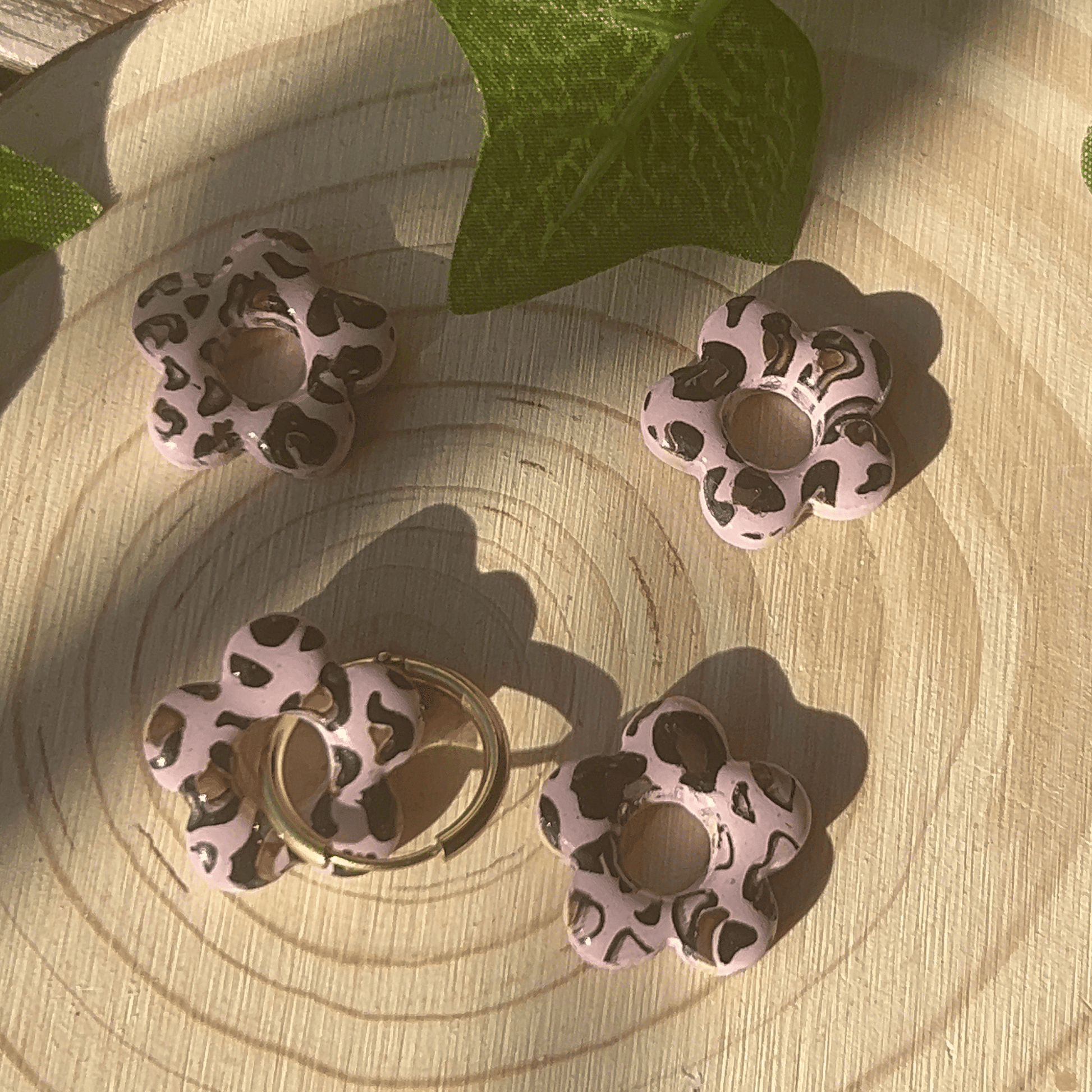 Quand le léopard se fait tendre 💕 : une petite fleur rose au motif léopard noir, girly et sauvage à la fois. Une pétille parfaite pour celles qui aiment les touches fun et originales.