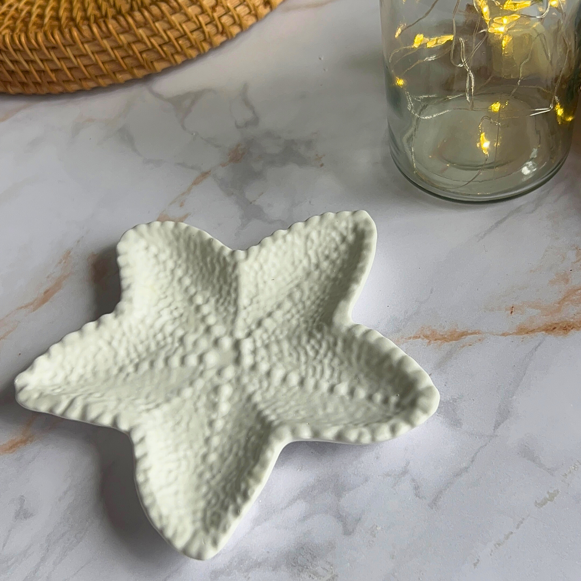 Le plateau, vide poche, coupelle est disponible en forme d’étoile de mer, doux pour une décoration estivale ou pour une envie de vacances à la mer...