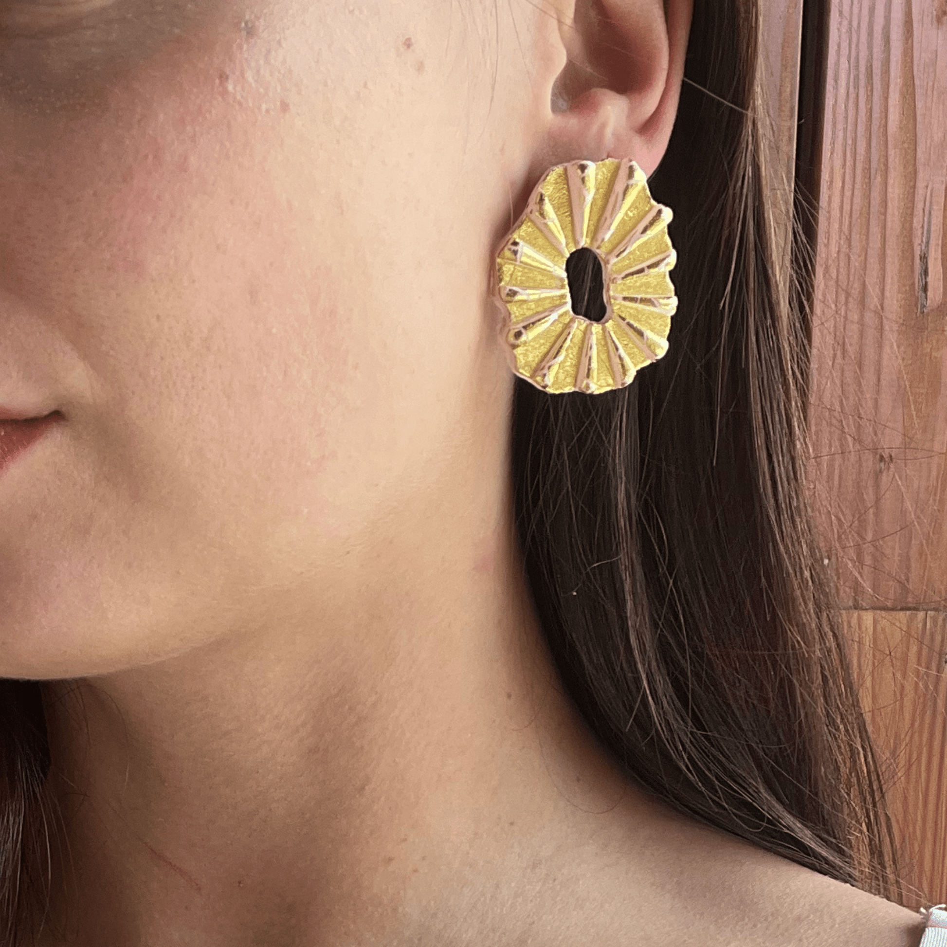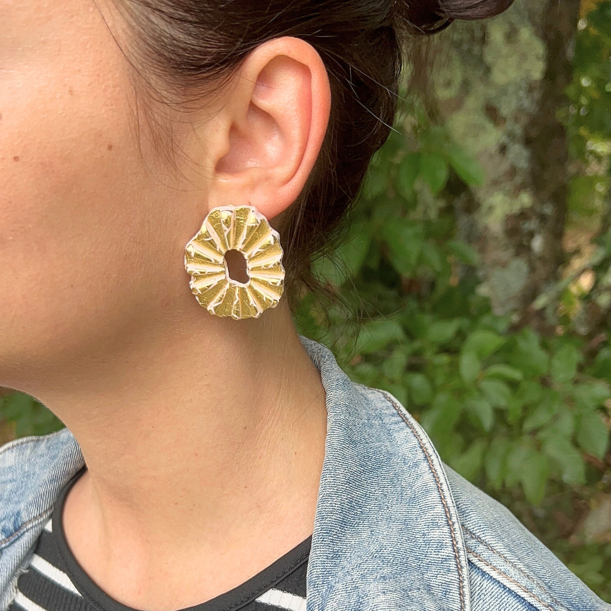 Minimalistes mais pleines de caractère, ces puces dorées ou argentées jouent sur une texture striée délicate qui capte subtilement la lumière.